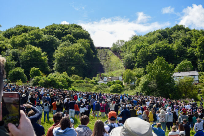 Every year at Cooper’s Hill in Gloucestershire, competitors chase a wheel of Double Gloucester cheese down a near-vertical slope. The cheese reaches speeds of up to 70 mph. People tumble the entire way down. There are volunteer catchers at the bottom to stop people rolling into the crowd. It has no formal safety measures worth speaking of and is considered one of the most dangerous traditions in the world. It continues regardless.